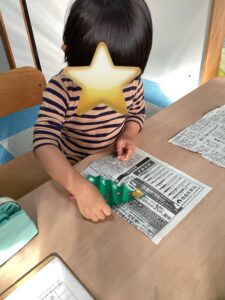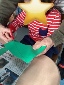 画用紙を線に沿って切り取ったら、ストローを使ってツリーの部分を作ります。