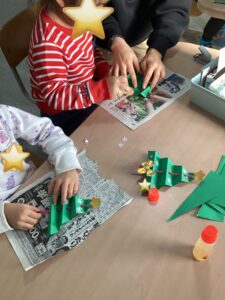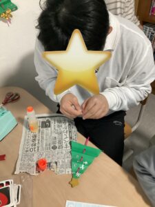リボンやお星さまで飾り付けて、キラキラシールを好きなバランスで貼ったら素敵なクリスマスツリーの完成です( ´ ▽ ` )
