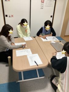 通報のポイントを動画視聴で確認しその後、事業所内での火事を想定した通報のシミュレーションを行いました。